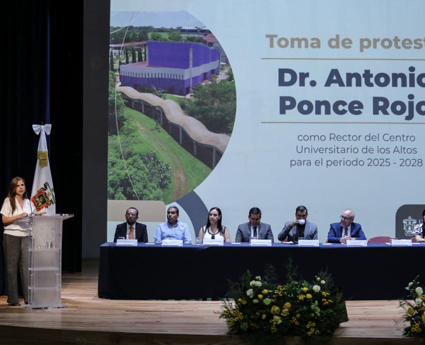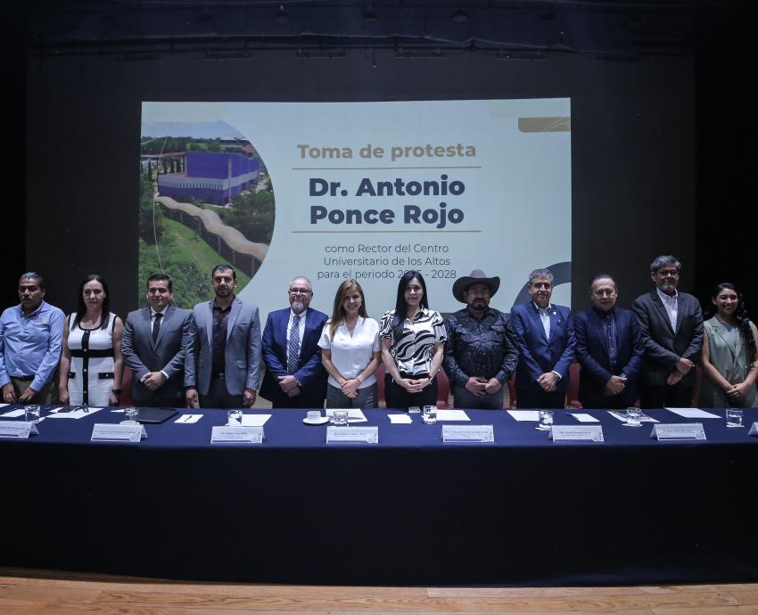 El doctor Antonio Ponce Rojo, al rendir protesta como Rector del Centro Universitario de los Altos (CUAltos) para el período 2025-2028, planteó la continuidad en las líneas de trabajo de la anterior administración en la que fungió como Secretario Académico, fortalecer los cuerpos académicos, compartir e impulsar la investigación con impacto, continuidad y pertinencia.