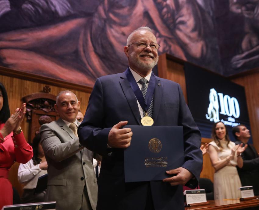 La Universidad de Guadalajara (UdeG) conmemoró el Centenario de su Refundación con una ceremonia en el Paraninfo Enrique Díaz de León, en la que se destacó el espíritu universitario y se reconoció a personajes que han marcado la historia de esta Casa de Estudio.